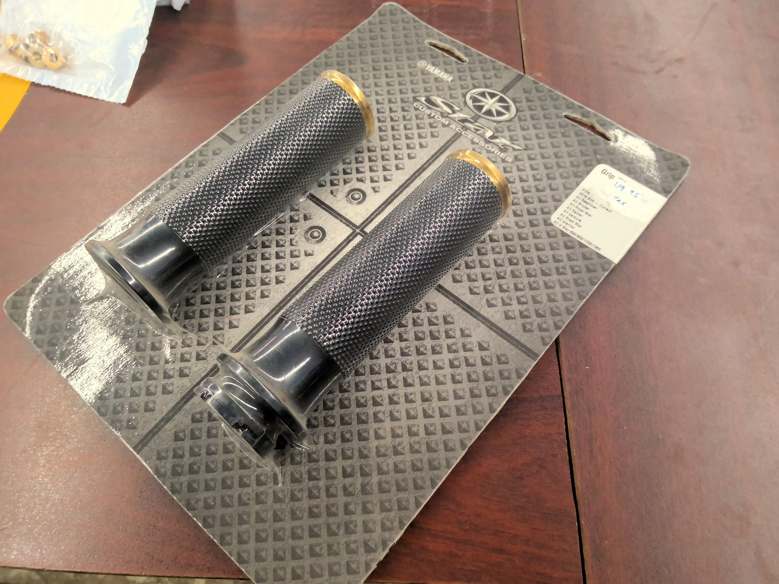 Yamaha Star Grip Kit feature rubberized knurling and a solid brass grip end with the Star logo etched in it.